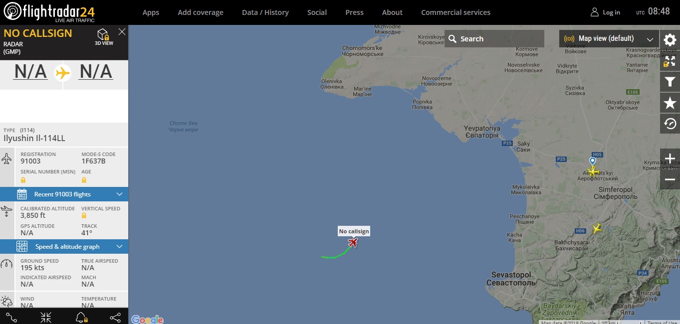 Окупанти літають в радіорозвідку. Це іл-144LL, ВМС напевно, тому й летів без транспондеру.