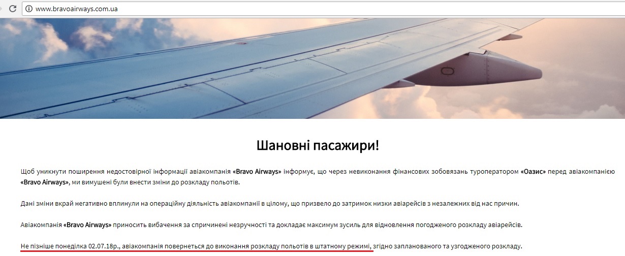 Хороші вихідні дані в шапці листа Bravo Airlines, почуємо кожного