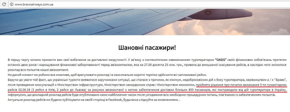 То есть вместо этих рейсов Браво выполнит гуманитарные рейсы и наплюют на своих клиентов и обязательства перед ними?