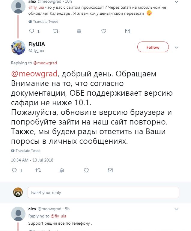 Ну, ось, сьогодні людина з Safari веб-переглядалкою спробувала щастя у твіттері, щоб отримати підтримку при замовленні квитків.УткА_в_ТаПкАх писав: ↑12 липня 2018, 10:37 Последней фразой и ссылкой - это Вы решили типа по-петросянить?![]()