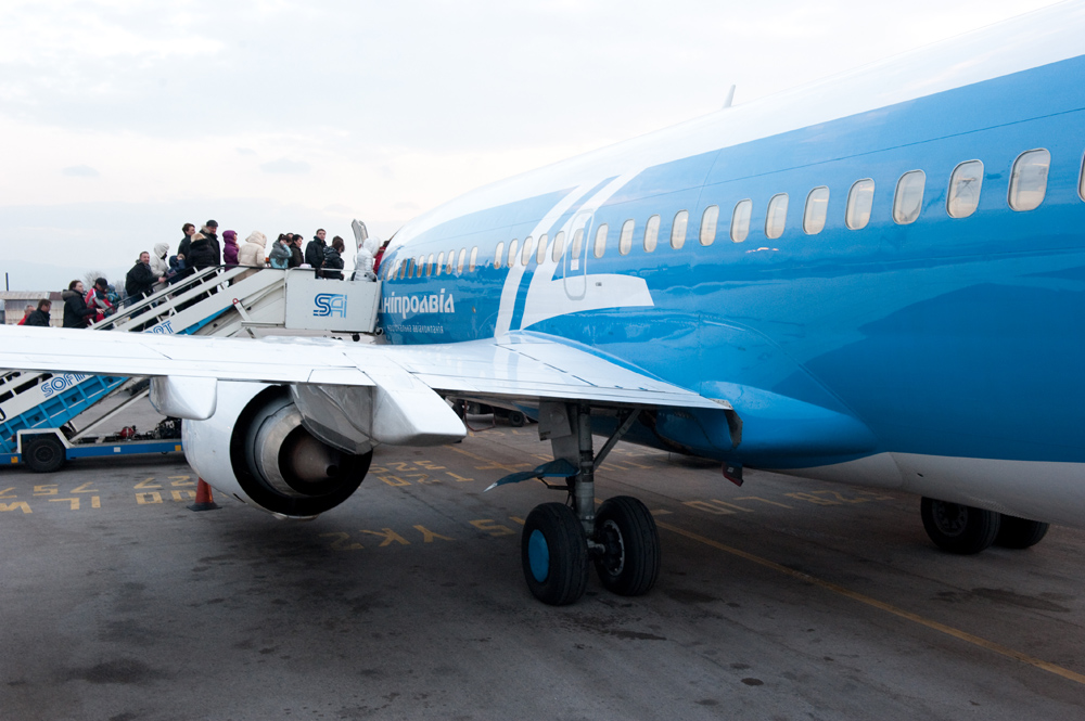Выполнялся АК Днеправиа на самолете Boeing 737-300 UR-IVK. По расписанию вылет в 17-05, регистрация вовремя и без задержек. Время вылета приближалось, однако возле гейта так никто и не появлялся, а вскоре на ЭЛТ телевизоре (да, да, в Софии Терминал 2 до сих пор оснащен древними теликами