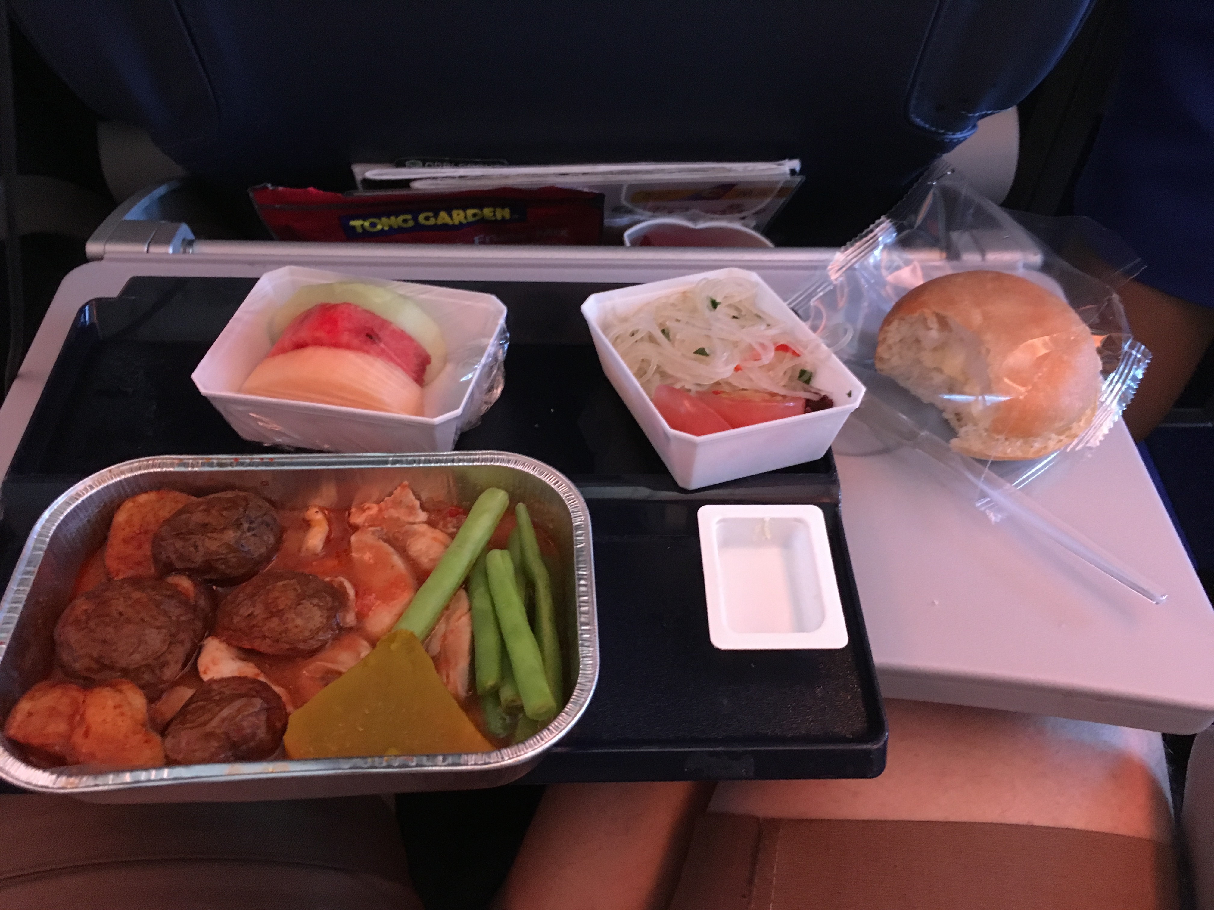 Наверно, самое дешёвое горячее питание, которое за деньги: 4 евро (курица в панировке с картошкой, морковкой и броколи), с вином—6.