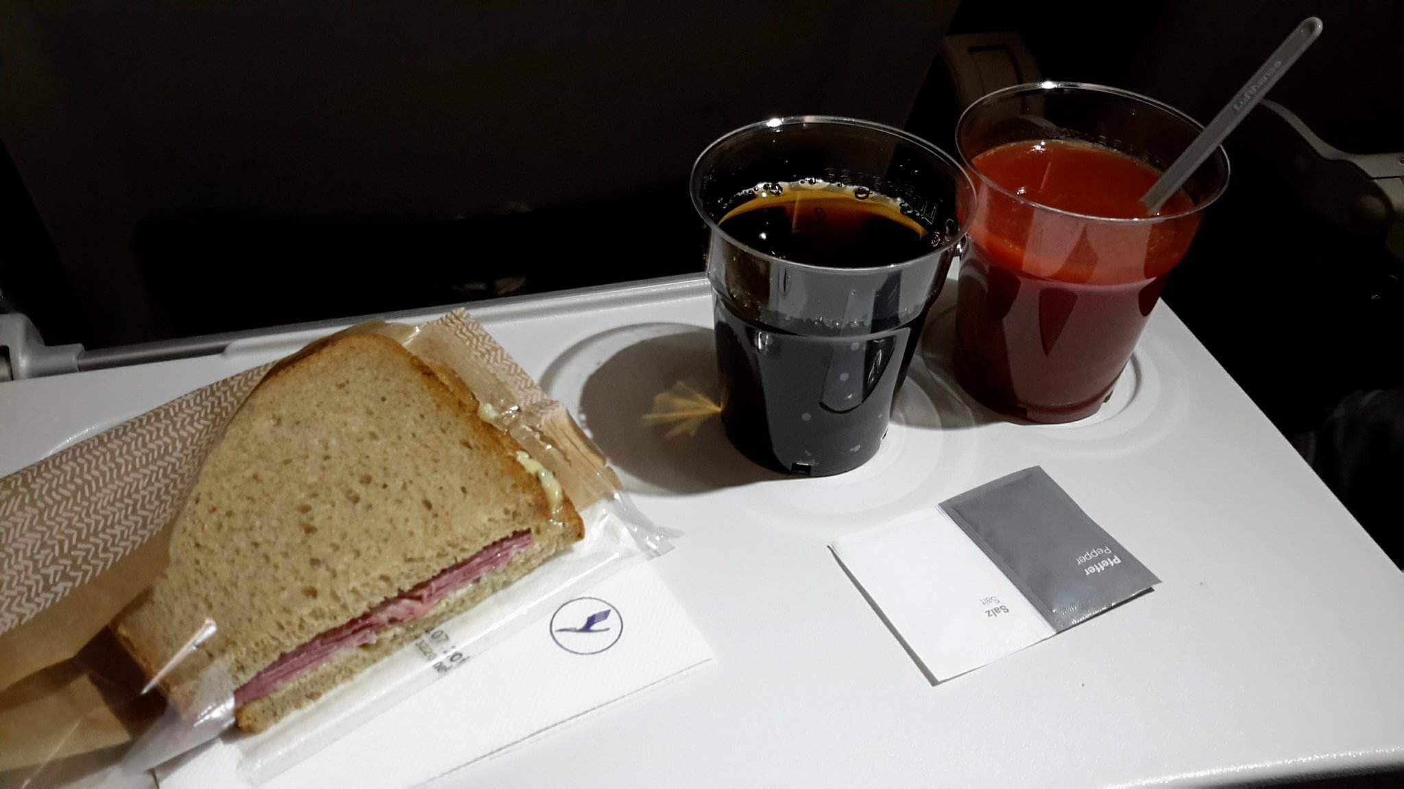 Таки дают маленький сэндвич, с ветчиной или сыром. Второй не дали