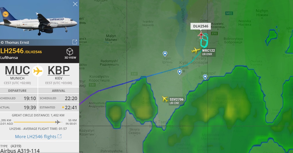 В Киеве гроза. Lufthansa в зоне ожидания, хотя наши садятся. Safety first.