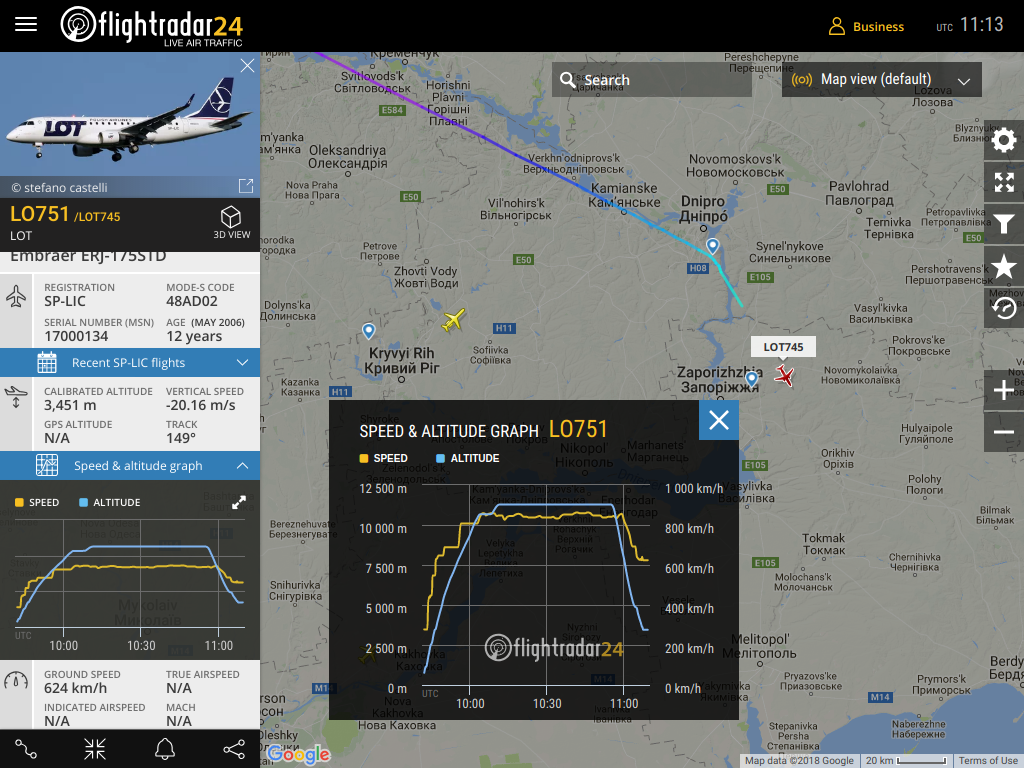 Embraer ERJ-175STD SP-LIC минає Дніпро , повертає на Запоріжжя та... застрягає...
