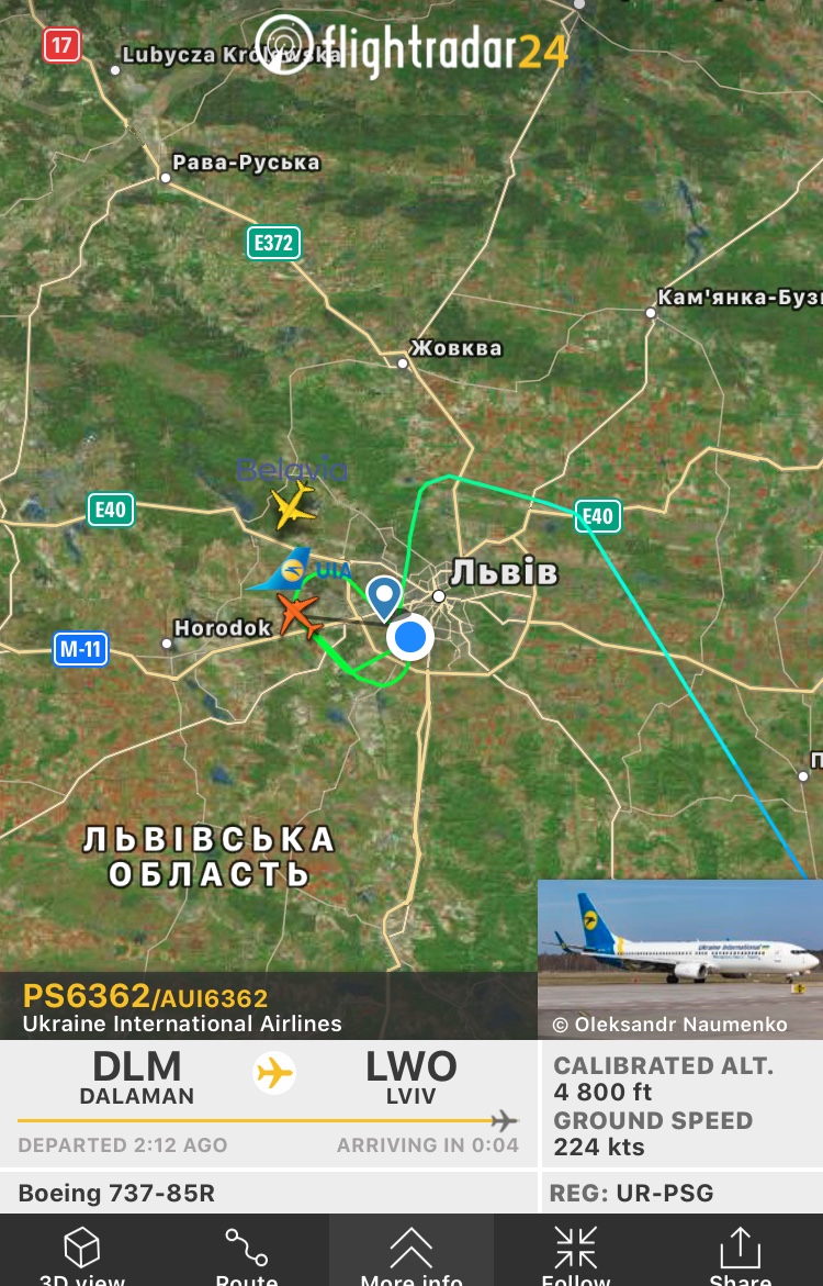 LWO - IEV. Не совсем обычный маршрут в самый пик сезона. Чартер? Просто технический рейс без пассажиров?