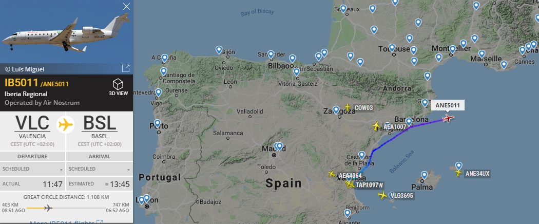 Валенсия вылетела в Базель на CRJ200 от Iberia Express.