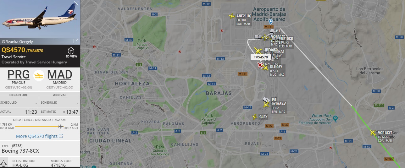 Виктория из Плзеня прилетела в Мадрид на В738 от Travel Service. Команда часто использует данного перевозчика.