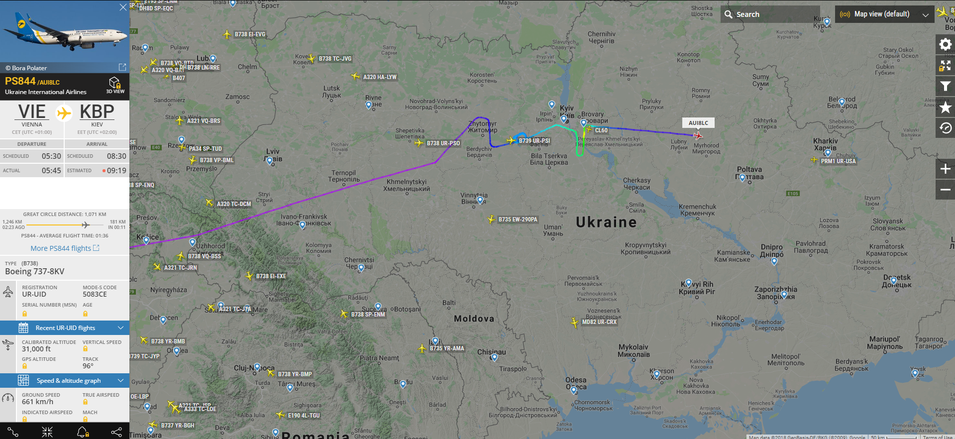 Райаны как-то странно летают. Вот сейчас, например, из Вильнюса в Киев в облет Беларуси летит.