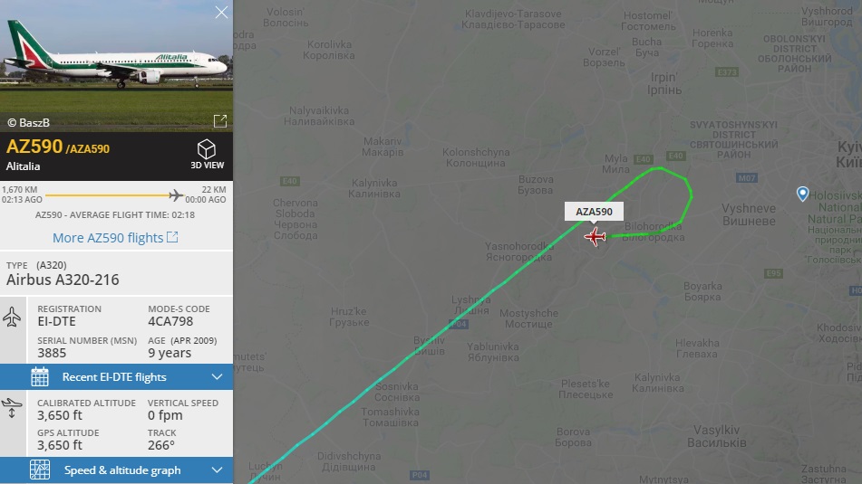 Алиталия в надежде на окно в тумане сделала круг и ушла в Борисполь. ВС с Минска в это время сразу шел в KBP.