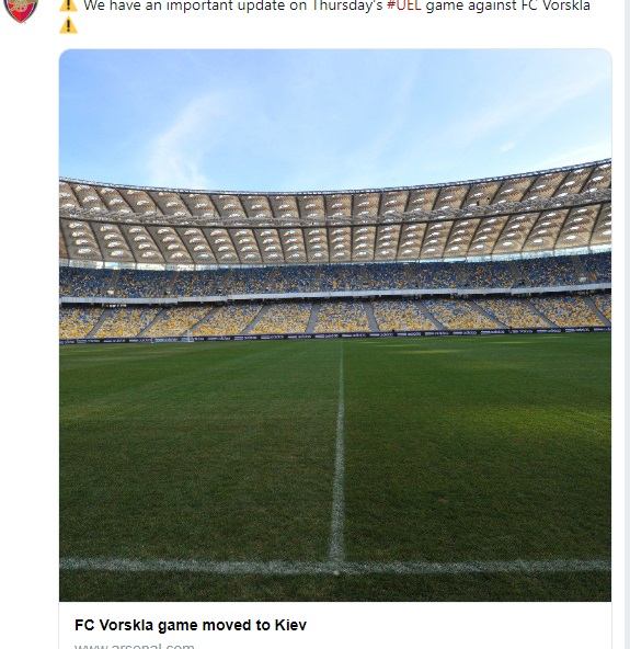 UEFA's Emergency Panel has today taken the decision to relocate FC Vorskla Poltava's UEFA Europa League group stage match against Arsenal FC from the city of Poltava, following the introduction of martial law into certain regions in Ukraine.