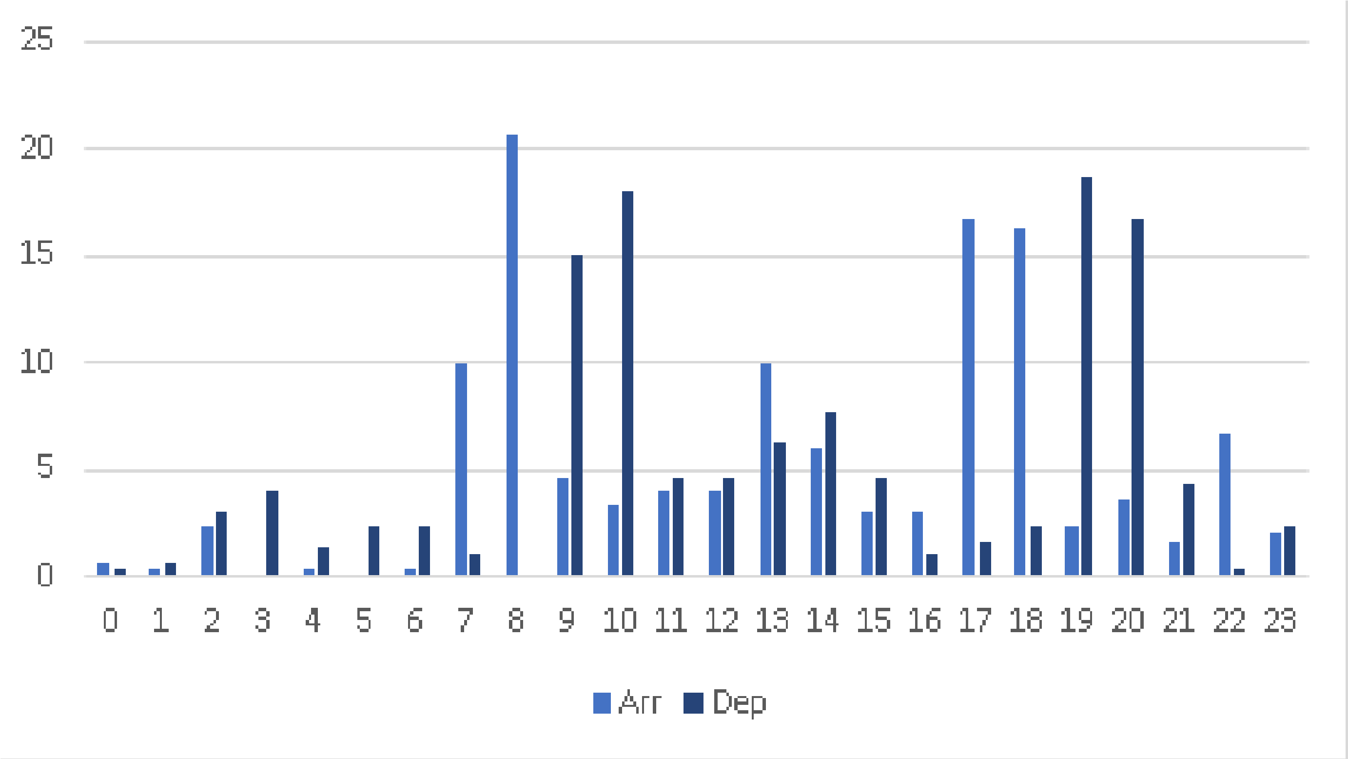 08:00-09:00: ~20-21 самолетов в час