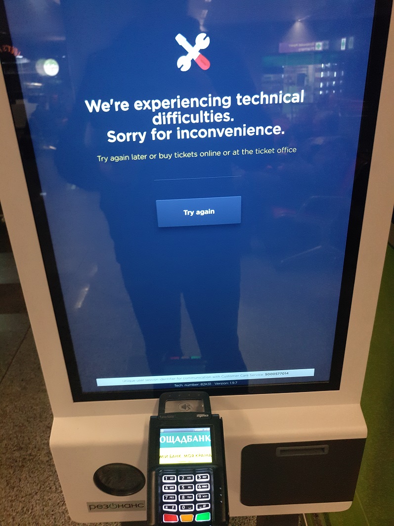 Оплата: швидко зручно, пейпас, супер. Але збоку купувала сімя 3 квиточки, закінчився папір на яких друкує квитки. І гроші в них зняло, а квитки не друкануло. Хтось там підійшов, сказали чекайте, скоро піднесуть нову бабіну на якій друкуються…![]()