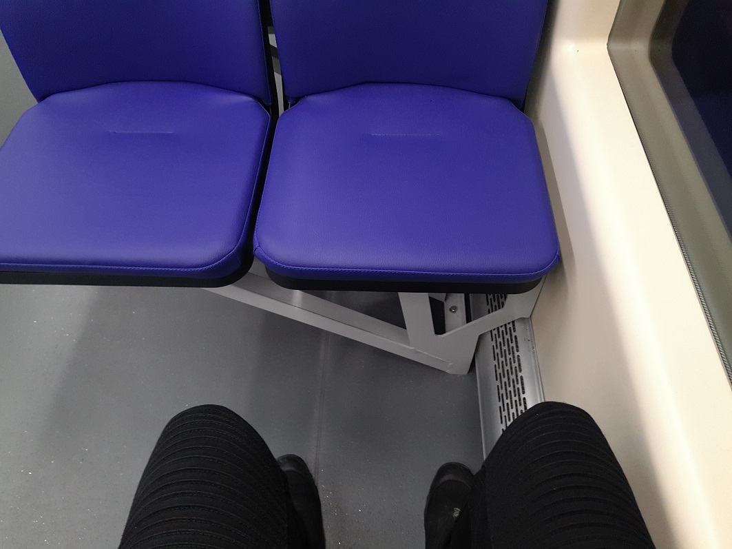 2. Сам потяг. Якийсь економ варіант… дешеві крісла з дермантину, які точно зносяться за рік.. пластик дешевий. Відстань між рядами крісел вже писали, ну дійсно мало. Таке враження, що якщо ти укранець, ти повинен «страдать»