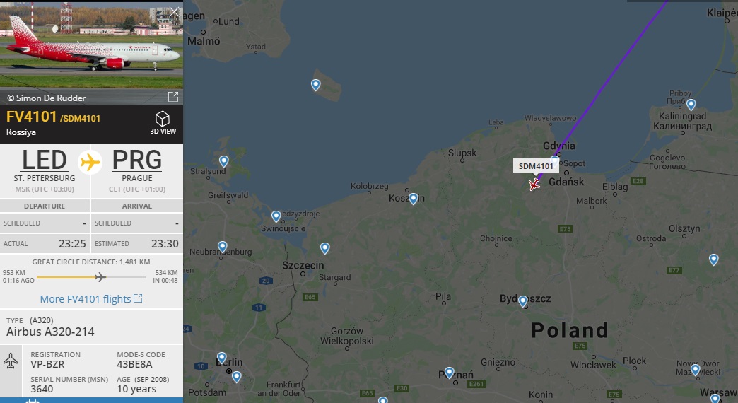 В понедельник также летел ЦСКА в Мадрид на A320 от Аэрофлота, но не на своем брендированном VP-BWD.