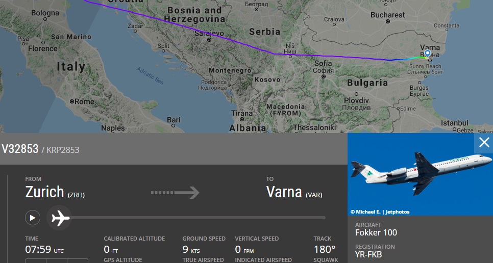 Zurich - Fokker 100, Carpatair. Выездные игры команда летала разными ак.