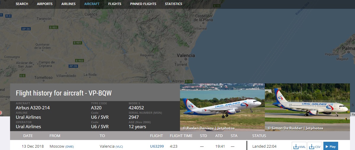 В понедельник также летел ЦСКА в Мадрид на A320 от Аэрофлота, но не на своем брендированном VP-BWD.