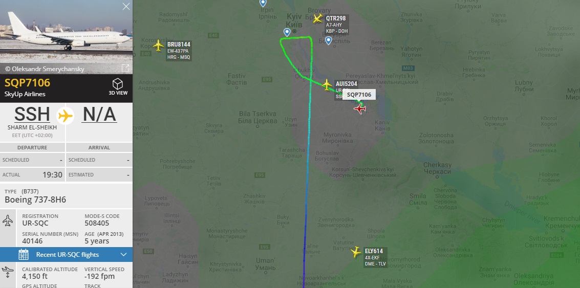 Визз из Борисполя пролетел над Жулянами и сейчас обратно возвращается в Борисполь.