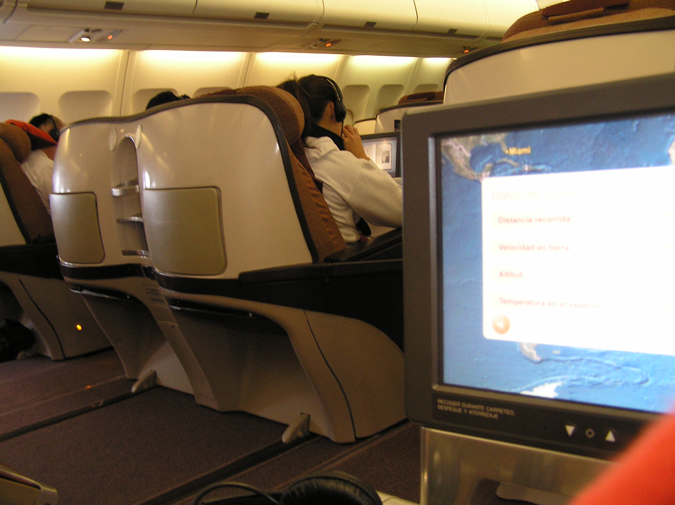 купував квитки та чекінив товариша, який їздив додому в Бразилію на 2 тижні. Квиток коштував 800 євро (придбано за місяць до поїздки, можна було купити й дешевше та він тягнув до останнього). При розрахунку карткою проблем не було. Електронний чекін здивув на сайті своє назвою (automatic checkin). В решті-решт з невідомих причин в Лісабоні видали інший посадковий талон на Мадрид-Сан Пауло (без пояснень), а товариш це помітив вже в літаку, і був приємно здивований, бо замість місця в економ-класі отримав у бізнес (чи 1й? я точно не знаю, як він там називається, але салон був поділений, здається, на 3 частини, його посадили в 1й, завтра ще уточню)