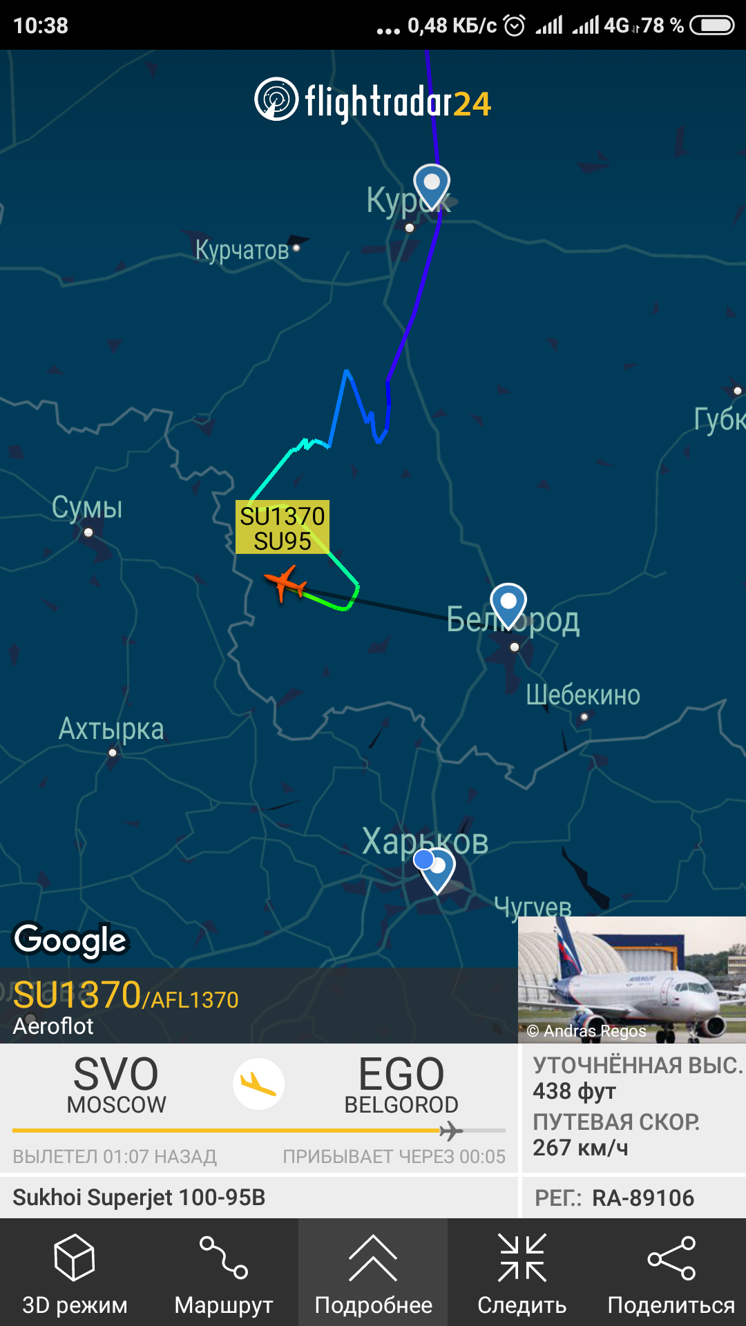 Да. Судя по ФР рейс успешно сел в Красную Яругу, но это не так, он сел в Белгороде. Кроме того, подобные резкие развороты на снижении явно не характерны, более того, я бы сказал, что невозможны.