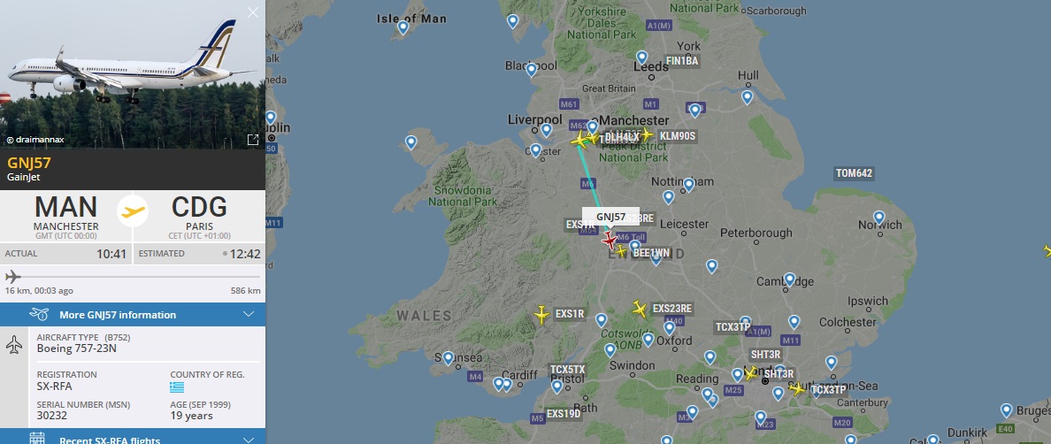 Liverpool вылетает на ответную игру в ЛЧ против Баварии. B757, Titan airways. Команда долгое время с данным перевозчиком.