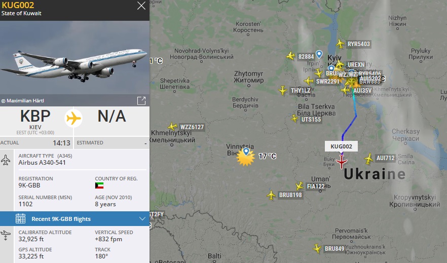 Урядові можна бачити через flightaware.com Один з літаків Нашого UR-UKR а сусіда RA-96022, хоча останній має їх декілька