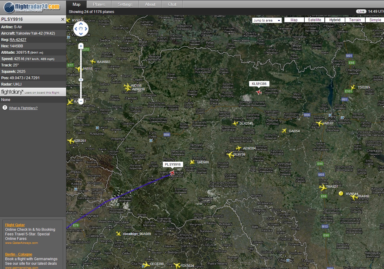 юху! якщо вірити цій системі, то над моїм Дубно проходить Malaysia Airlines Boeing 747-4H6 # From : Kuala Lumpur, Kuala Lumpur (KUL)
