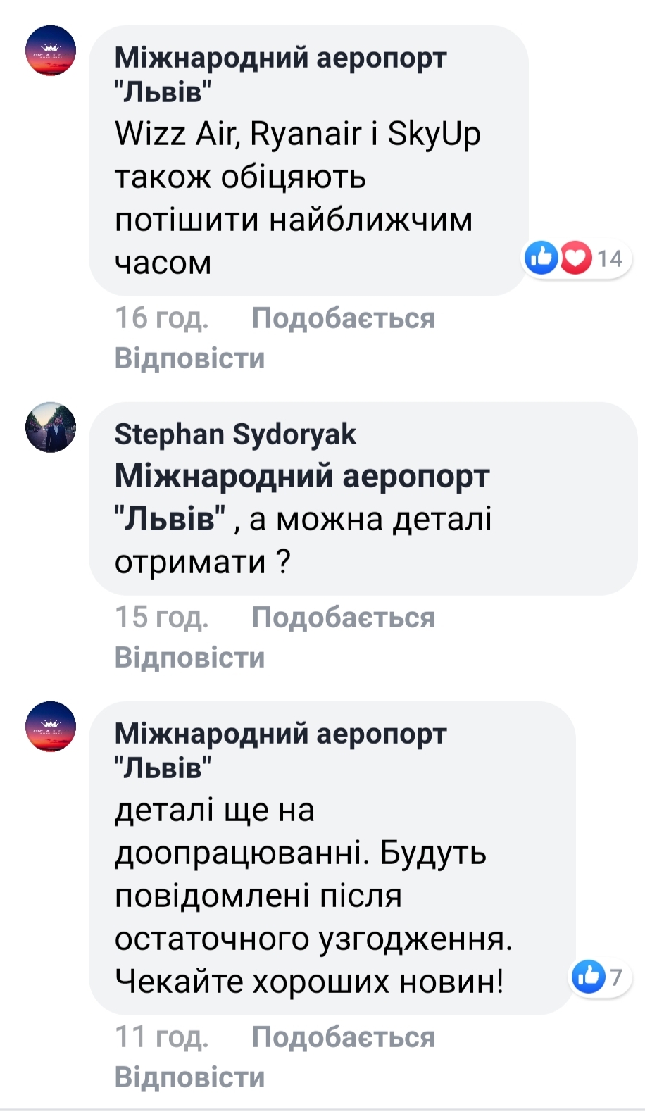 Конечно. Львов является самым очевидным кандидатом. Возможно, это будут чартерные рейсы, запуском которых уже интересуются два туроператора. Но, повторюсь, рейсы должны быть коммерчески целесообразными. Сейчас мы в процессе обсуждения. На этой неделе мы будем встречаться с туроператорами и обсуждать возможность запуска рейсов в этом или следующем году.