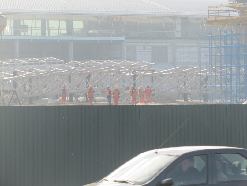 Фотографировали рано утром, около 7-8 часов (поэтому фотки засвечены немного), рабочие только приезжали и начинали работать. В целом работа кипит. Стройка выглядит очень внушающе
