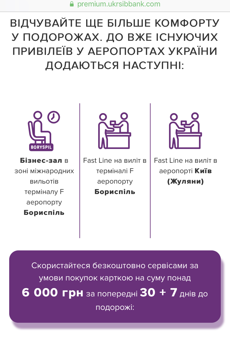 С 15 июля по MC Premium Укрсиба будет доступен лаунж и fast line в терминале F Борисполя, и fast line в Жулянах. При этом минимальные траты за 30+5 дней подняли до 6000 грн.