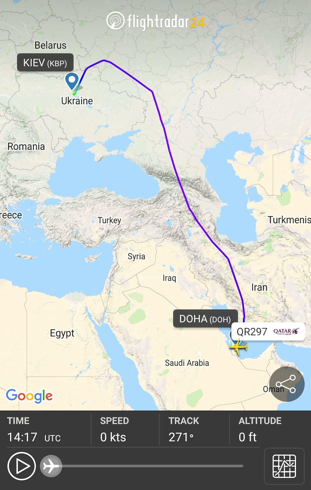 Интересно, в чем причина такого облёта через территорию россии, и заход на Киев с севера 29 и 30 июня? Обычно же через Турцию летят и облетают Крым с запада.