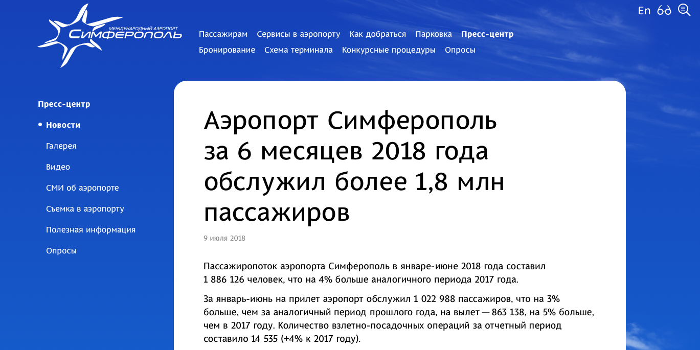Классический совок начинает подтасовывать статистику?! или где-то ошиблись?Orel2016 писав: ↑03 липня 2019, 16:57 Международный аэропорт Симферополь (аннексирован Россией) им. Айвазовского в первый месяц лета обслужил 645,2 тыс. пассажиров. Рост пассажиропотока по сравнению с аналогичным периодом прошлого года составил около 6,5%. Он достигнут, в том числе, за счет увеличения количества рейсов и расширения чартерной программы.