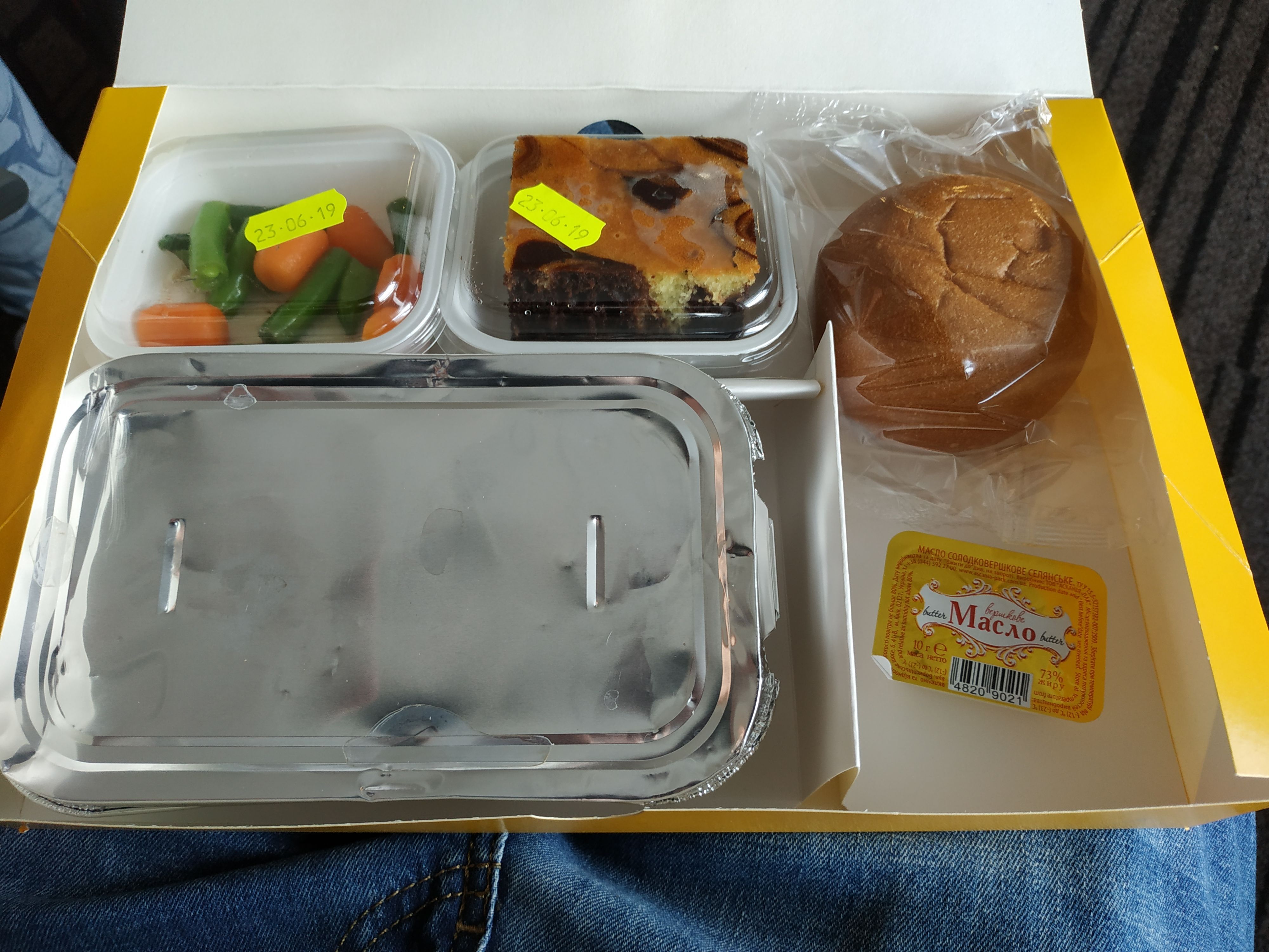 Фото їжі, яку надавалась МАУ при затримці рейсу PS335 Київ-Венеція 23.06.2019р. Затримка прибуття рейсу у пункт призначення склала 6,5 годин.