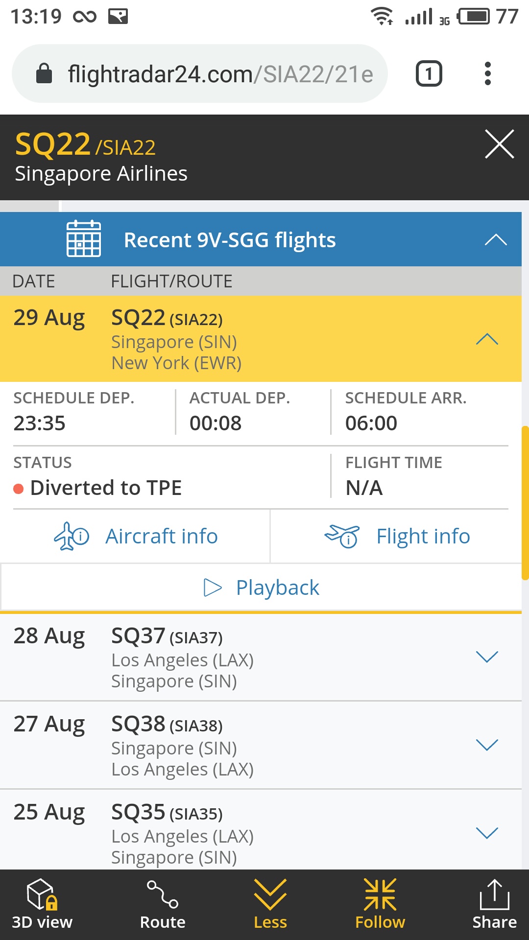 SIN-EWR Вылетили ночью с Сингапура нормально, но сели в Тайвани