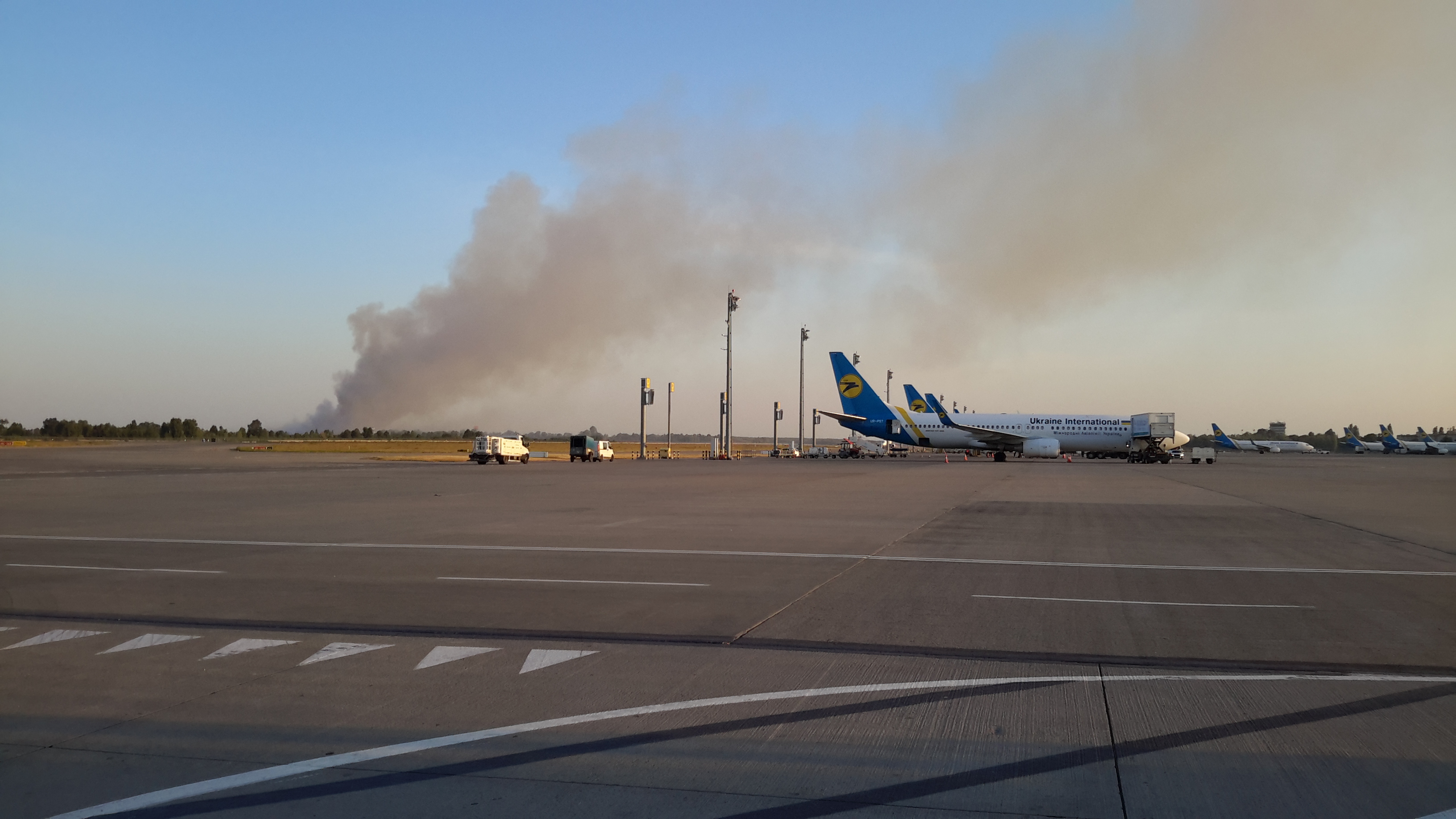 Со стороны жд линии за трассой горело еще и поле. Сегодня в Борисполе дымовая завеса