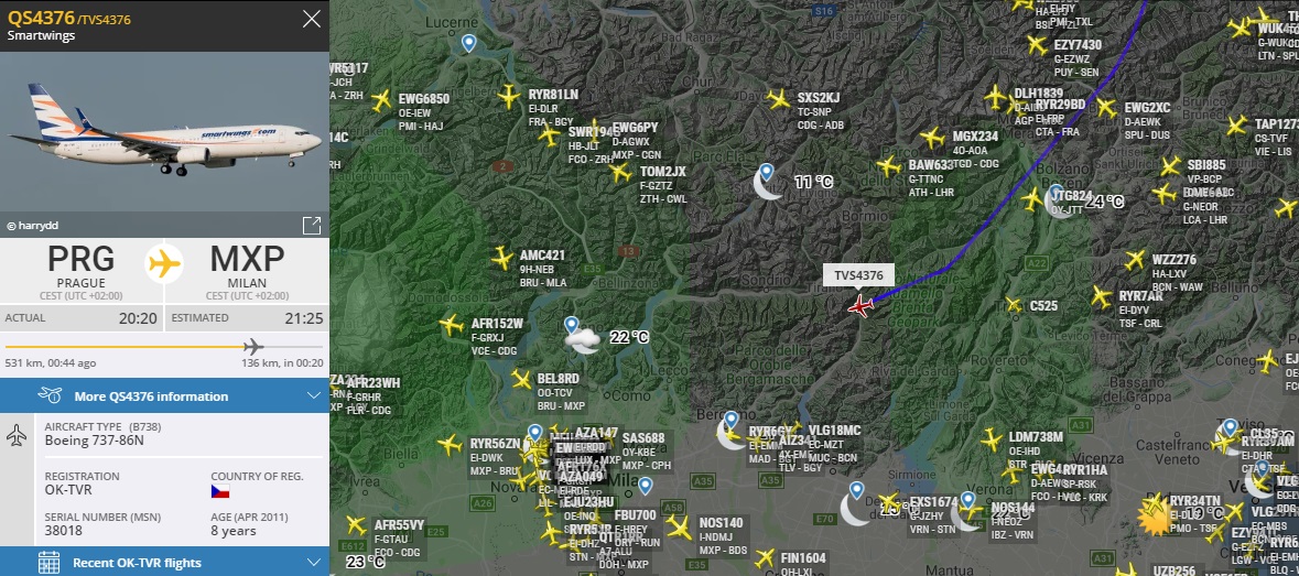 FR24 - подтягивает последний рейс с данным номером. Он как раз был в Лондон.