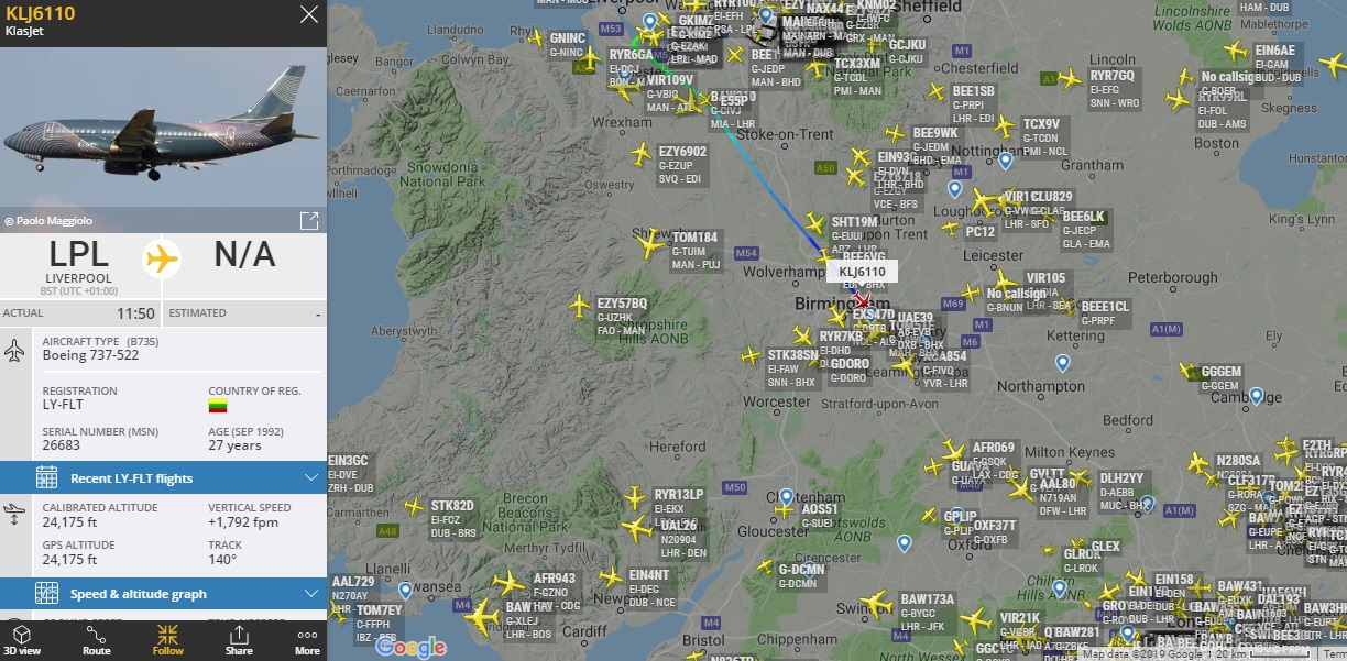Liverpool - B735, Klasjet (business class) бывший AirBaltic
