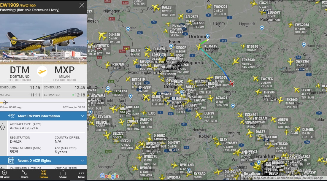 Borussia Dortmund - B735, Klasjet. Команда летела двумя бортами В735 в бизнесе для команды. А320 D-AIZR (фирменный борт команды) для пооддержки.