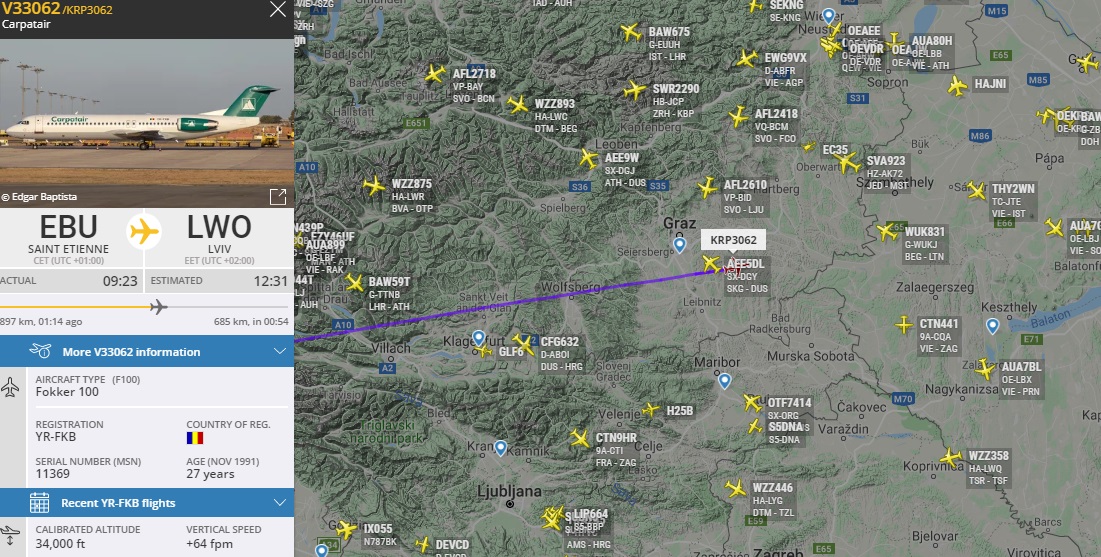 Slovan - Fokker 100. Carpatair. Команда с разными перевозчиками.