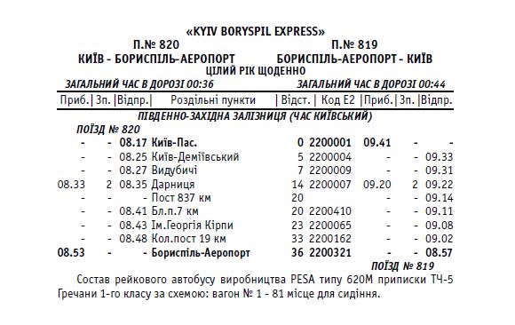 Железнодорожное сообщение между Киевом и а/п Борисполь