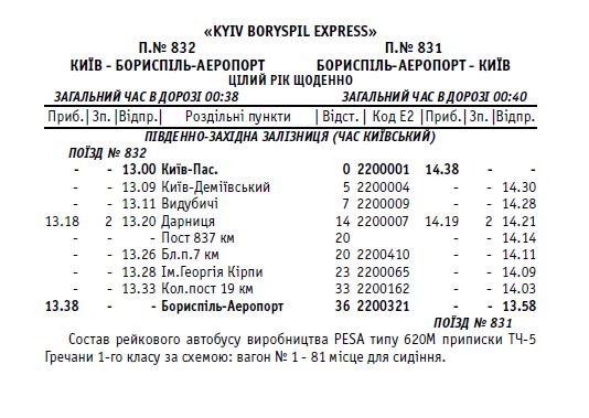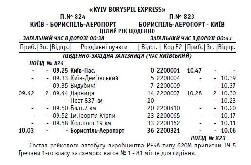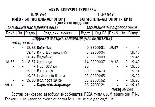 Железнодорожное сообщение между Киевом и а/п Борисполь