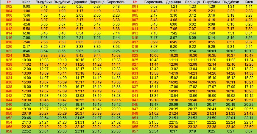 может седня, завтра сделаю в табличке по станциям Киев Пасс Выдубичи, Дарница, Борисполь
