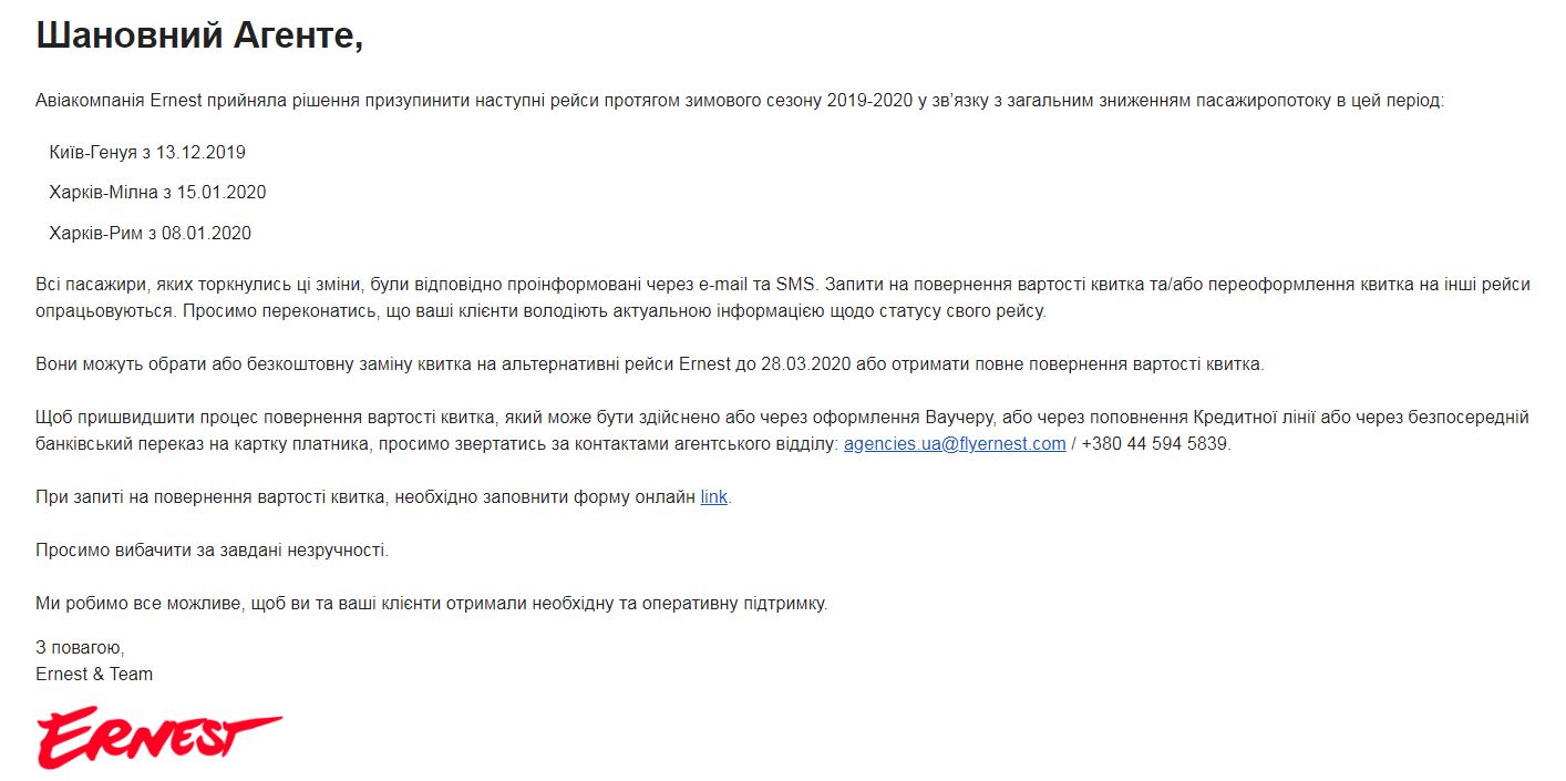 До 13 січня 2020 Ernest має право продовжувати польоти.