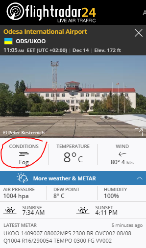 FR24 показывает METAR, в т.ч. в базе. Если вижу ситуацию подобную той, что на ваших скриншотах, сразу смотрю погоду. В FR даже без сводки видно условия в аэропорту.