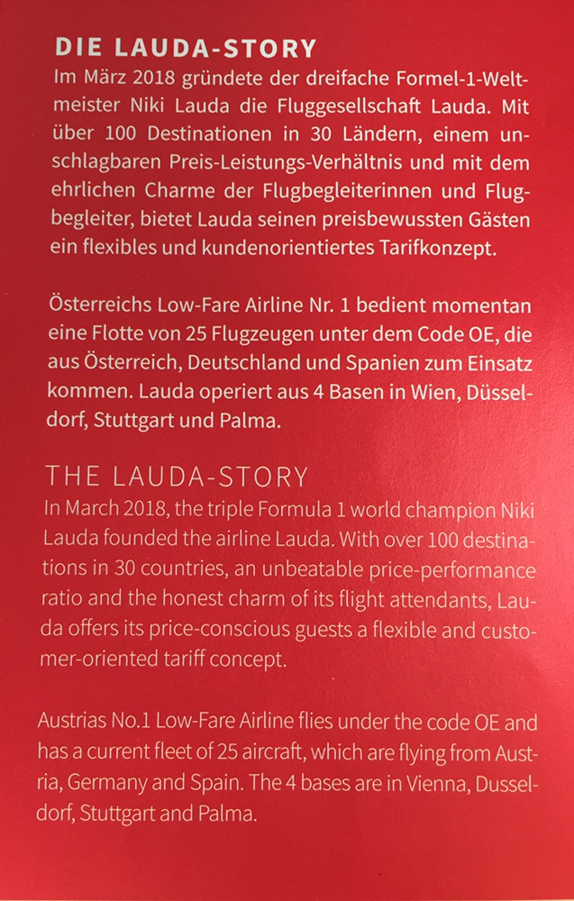 Судя по приветствию СЕО Laudamotion в их бортовом журнале, они предпочитают не упоминать о своём родстве с Ryanair.