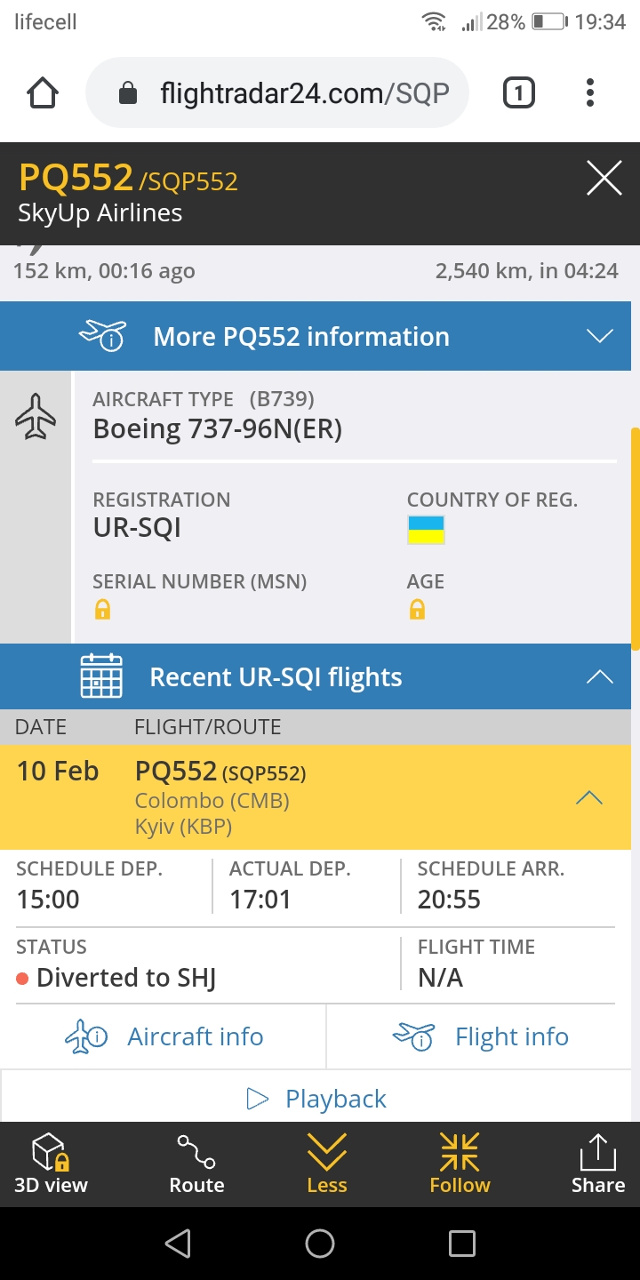 Вылетели с Коломбо, сели в Шардже на дозаправку