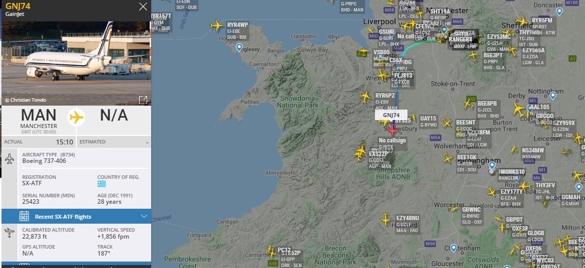 Man City летит на матч против Real (Madrid). B734 GainJet (Business).