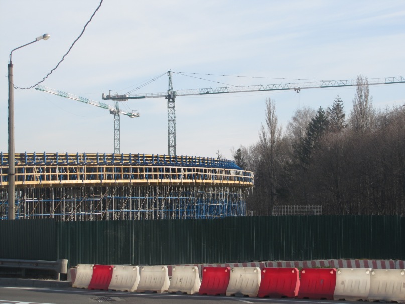 Фотографировали рано утром, около 7-8 часов (поэтому фотки засвечены немного), рабочие только приезжали и начинали работать. В целом работа кипит. Стройка выглядит очень внушающе