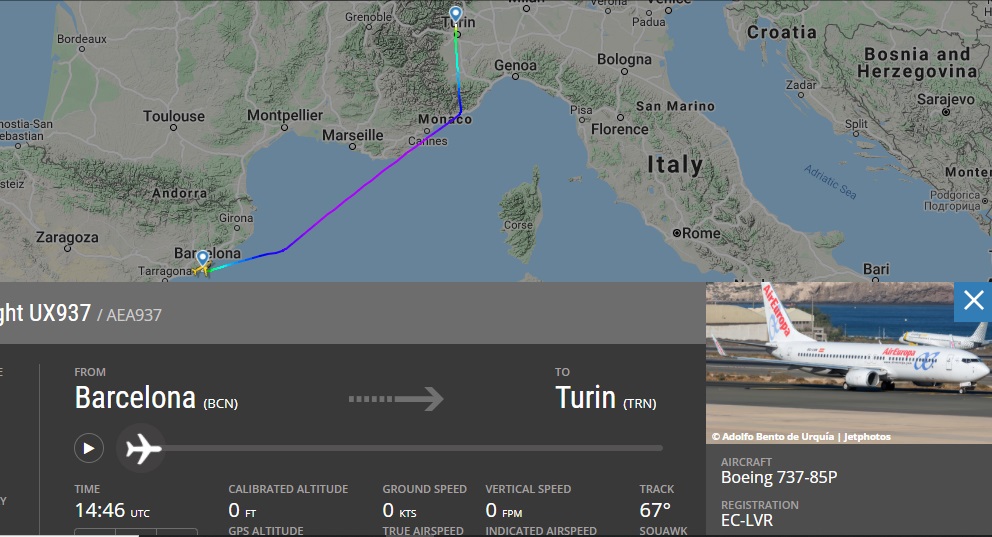 Barcelona вылетает в Киев на игру против Динамо. Обычно команда использует В738 от AirEuropa, но из-за дистанции В757 Privilege Style.