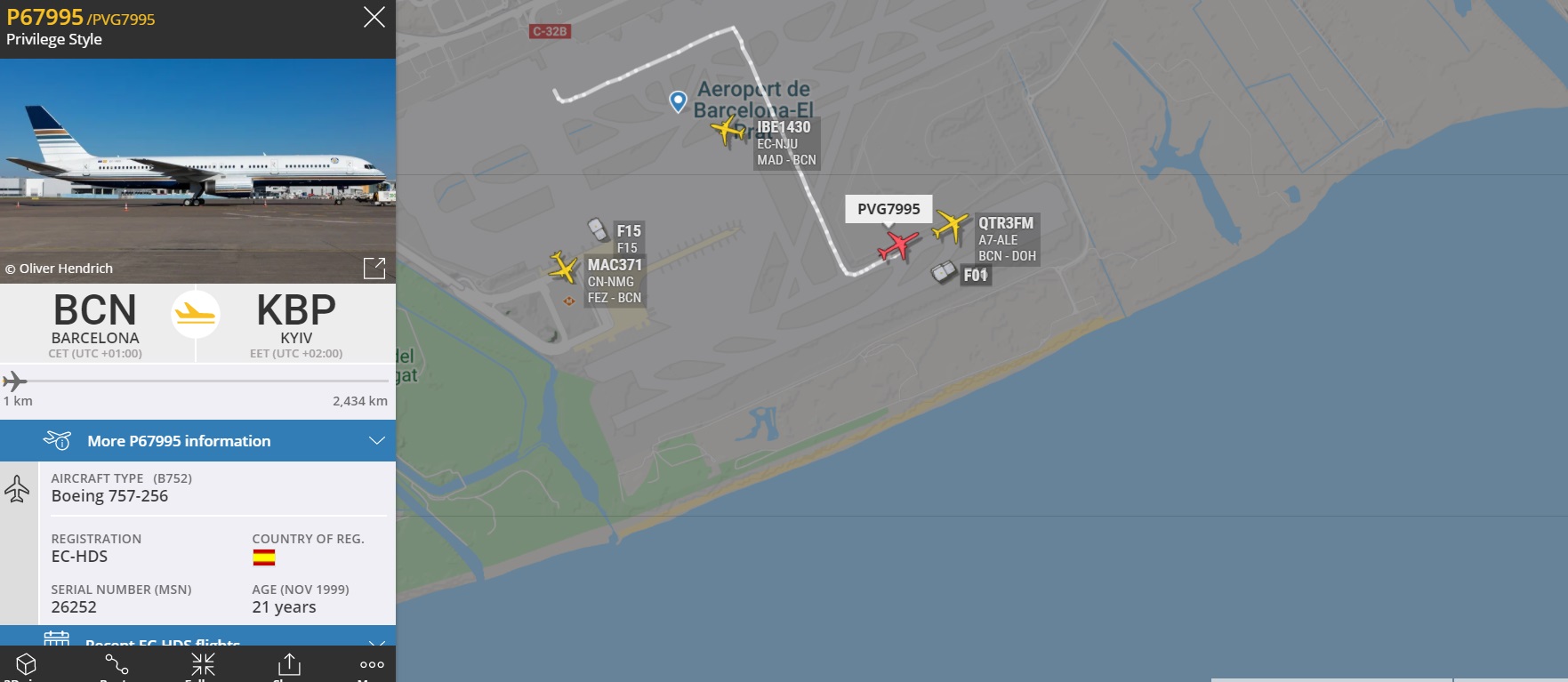 Barcelona вылетает в Киев на игру против Динамо. Обычно команда использует В738 от AirEuropa, но из-за дистанции В757 Privilege Style.